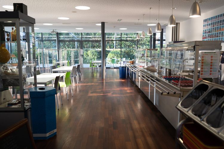 Vous pouvez louer la cafétéria complète ou uniquement la salle de conférence. Une paroi amovible permet de diviser la salle en deux. Et en été, vous profiterez de la belle terrasse.
